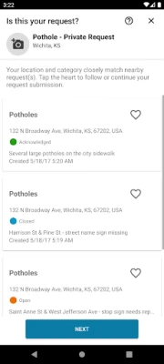Report issues such as potholes, graffiti, illegal dumping and more to the City of Wichita. You are also able to create an account and track progress of your submissions.