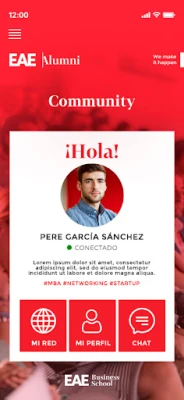 Conecta de una manera sencilla y rápida con tus antiguos compañeros de Máster y potencia tu networking y empleabilidad gracias a nuestra App. Desde la App Alumni EAE podrás conocer todos los servicios que abarcan íntegramente tus intereses académicos y profesionales, inscribirte y participar de nuestros eventos y ¡mucho más!