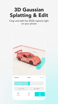 • 3D Gaussian Splatting: Experience the future of 3D scanning and capture accurate 3D scenes with a short video; edit using tools like sphere/plane cutters and brushes. Export in native format or OBJ.