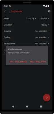 ★ Optional notification icon that displays last smoke status to quickly determine if you should wait to smoke or not