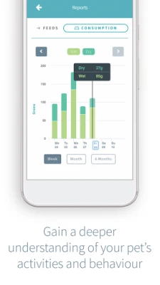 • Monitor your pet’s feeding behaviour over time – see how much, how often and when they eat. A change in feeding behaviour can be a key indicator of a change in health or wellbeing.