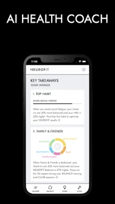 NEUROFIT integrates high-performance coaching, somatic exercises, breathwork, mindfulness, and meditation techniques to help you address stress, anger management, and burnout in key life areas such as Love & Partnership, Money & Finance, Career & Business, Mission & Purpose, Environment, and Health & Wellness. Through daily meditation check-ins and data‑driven tracking - including Heart Rate Variability (HRV), resting heart rate, and NEUROFIT Balance™ Score - you can measure your progress without extra wearables. If you’re seeking better sleep or a new tool to complement your existing therapy or wellness app routine, NEUROFIT’s unique focus on the nervous system goes far deeper than surface-level self help.
